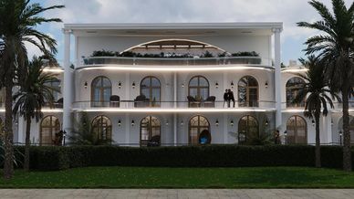 Introducing the breathtaking Butterfly Villas, a luxurious architectural gem nestled within our exclusive beach club resort in North Cyprus. These villas are a harmonious blend of Mediterranean elegance and modern sophistication, designed to captivate at first glance. With their gracefully curved facades and warm natural stonework, each villa exudes charm and serenity, while the subtle yet stunning LED strip lighting accentuates every architectural line—especially at twilight, creating a romantic, glowing ambiance against the sunset skies.